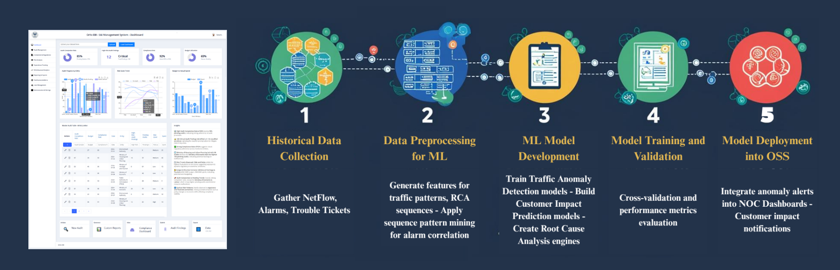 K A Consultants was requested to develop a cloud-native OSS architecture for ZOI’s submarine and IP transport networks. We designed AWS-based monitoring infrastructure and integrated two predictive AI use cases: Customer Impact Analysis During Failures and AI-driven Traffic Anomaly Detection. This project included designing full RBAC role governance, data compliance protocols, and hybrid integration with legacy network systems, setting a new benchmark for OSS modernization with embedded AI capabilities.